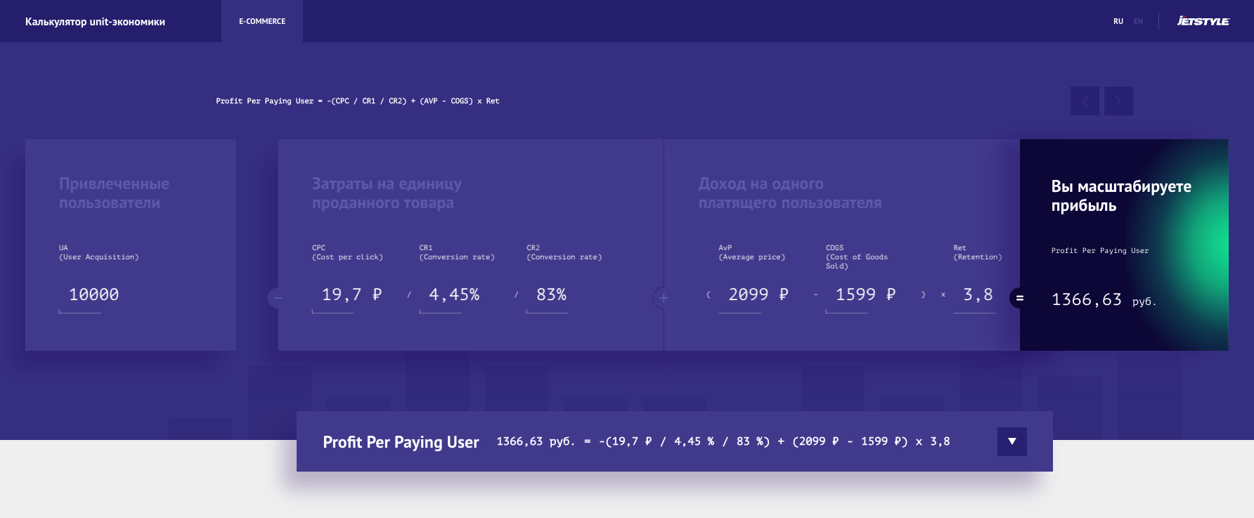 Наш калькулятор — это простой инструмент для обсуждения быстрых стартовых гипотез. Вот здесь он живёт. Сейчас мы работаем над его второй версией, поэтому, если вам как раз не хватает какой-то фичи, то самое время нас о ней попросить. Предварительно попользовавшись текущей версией, конечно :–) Написать можно на почту kulakov@gmail.com.